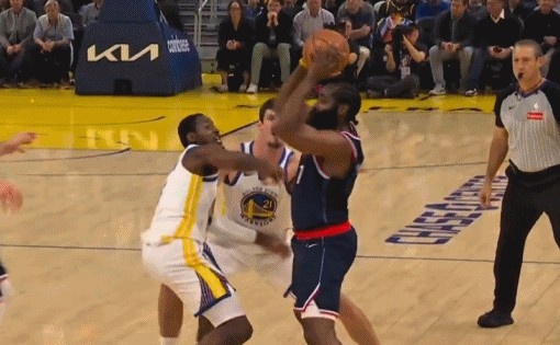 我冤枉!哈登强突库明加抛投打成2+1 库明加大喊&一脸不可思