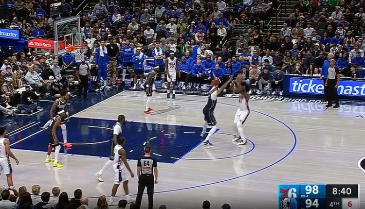 手感真可以!恩比德罚球线附近接球连续虚晃 顶着浓眉中投空心中