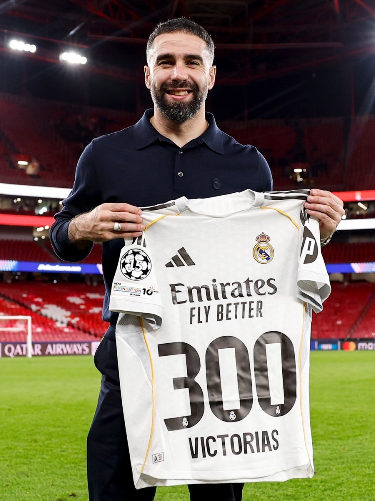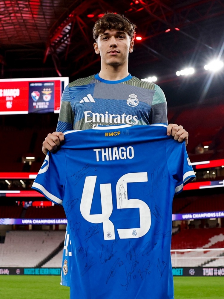 懂球直播2月18日讯 欧冠1/8决赛附加赛首回合,凭借维尼修斯的进球,皇马客场1-0击败本菲卡,取得晋级先机。 赛后皇马官推晒出了卡瓦哈尔、布拉欣·迪亚斯手持纪念球衣和小将皮塔奇手持全队签名球衣的照片,向卡瓦哈尔皇马的第300胜里程碑、迪亚斯第100胜里程碑以及皮塔奇的皇马正式比赛首秀送上祝贺。
