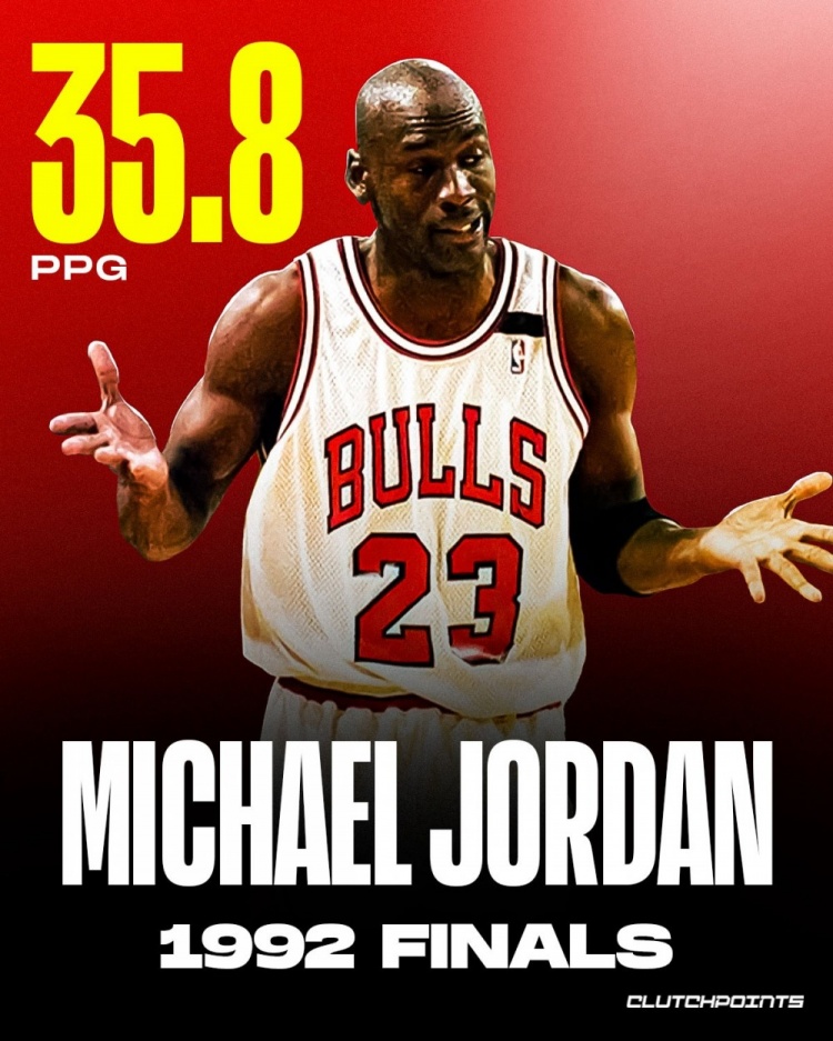 艾弗森2001年总决赛场均35.6分 乔丹1992年总决赛场均35.8分 詹姆斯2015年总决赛场均35.8分 奥尼尔2002年总决赛场均36.3分 杰里-韦斯特1969年总决赛场均37.9分 奥尼尔2000年总决赛场均38分 杰里-韦斯特1967年总决赛场均40.8分 埃尔金-贝勒1962年总决赛场均40.6分 乔丹1993年总决赛场均41分