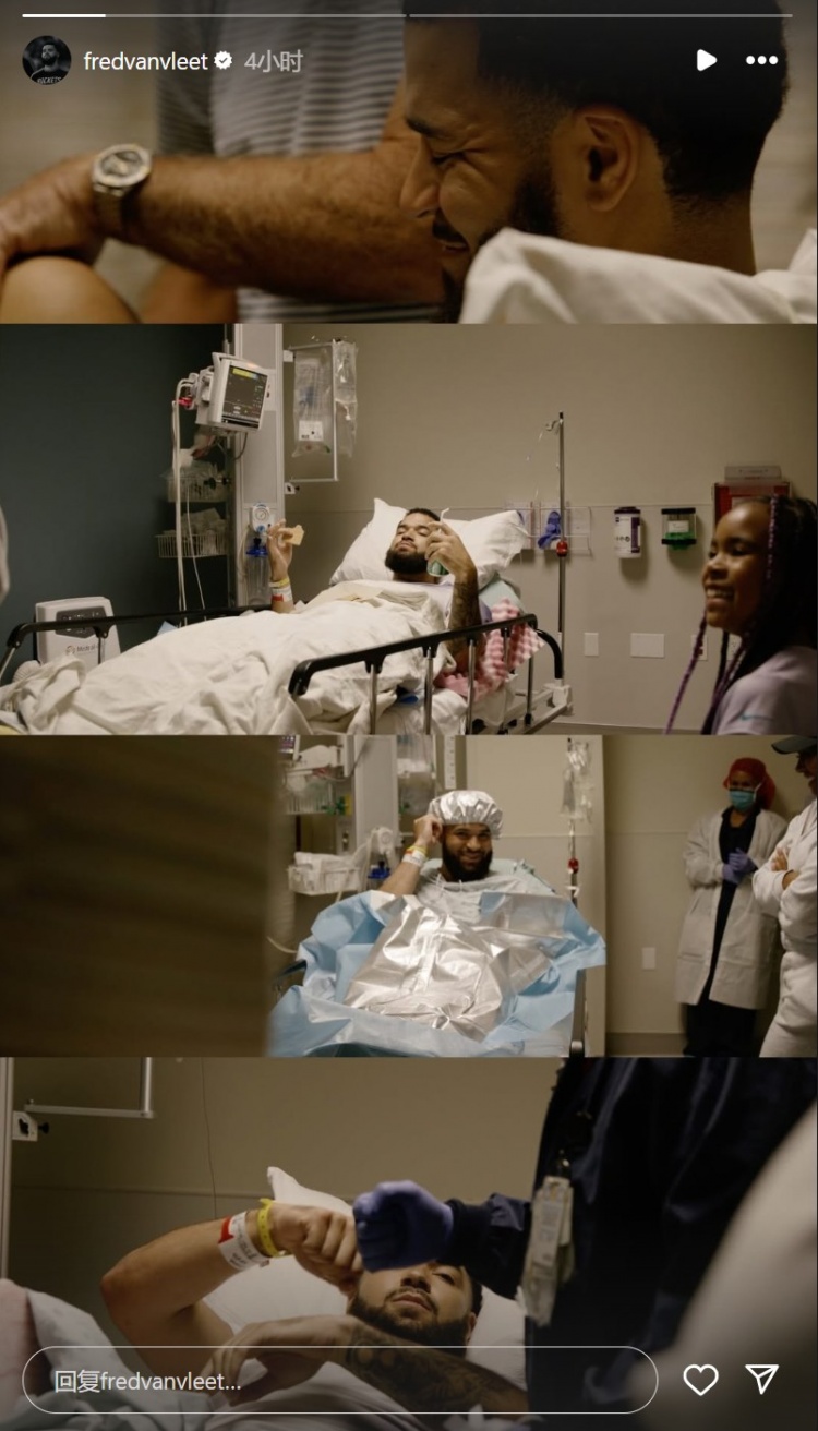 懂球直播9月29日讯 9月26日,火箭后卫范弗里特成功接受了右膝前交叉韧带撕裂的修复手术。 今天,范弗里特在INS晒出了自己在病房的照片,有孩子作陪,并且已经拄拐下地行走。