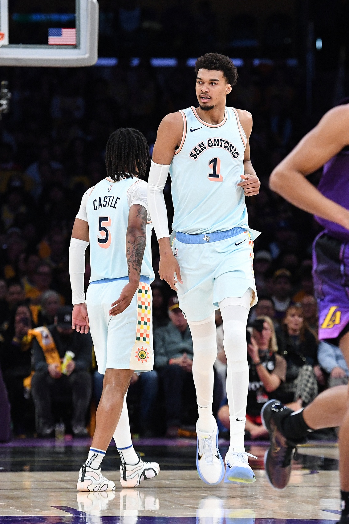 懂球直播10月31日讯 马刺今天107比101击败热火,喜迎开季5连胜。赛后卡斯尔接受了媒体的采访。 谈到比赛中和文班的那次空接时,卡斯尔说道:“他跟我说往月球上扔。那个球真的是往月球扔,而他接住了。” 相关新闻阅读: 就往天花板扔!文班高高跃起接瓦塞尔传球单臂暴力空接